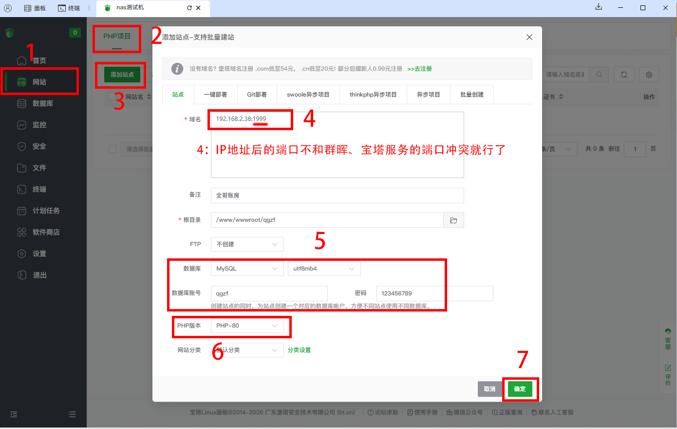 ## 一、新建站点 新建站点时,查看宝塔和群晖所需端口,不占用下面这些端口。 > >宝塔官方:端口列表(https://docs.bt.cn/user-guide/config/common/panel-port) >群晖官方:端口列表(https://kb.synology.cn/zh-cn/DSM/tutorial/What_network_ports_are_used_by_Synology_services) > {width=908 height=540} --- ## 二、下载源码 Gitee(国内):https://gitee.com/qgdev/ Github(国际):https://github.com/hnqg-dev --- ## 三、上传、解压 {width=908 height=540} --- {width=908 height=540} --- {width=908 height=540} --- {width=908 height=540} --- ## 四、导入数据库 {width=908 height=540} --- {width=908 height=540} --- ## 五、配置数据库 {width=908 height=540} --- {width=908 height=540} --- {width=908 height=540} --- ## 六、配置伪静态 {width=908 height=540}