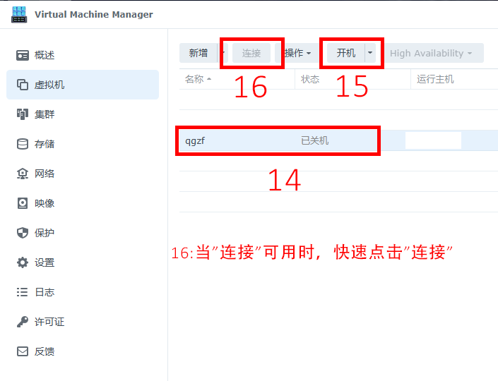 ## 安装虚拟机 #### 两种方法查找到群晖的虚拟机 方法一: 在 `套件中心` 找到图标 {width=30 height=30} 方法二: 在 `套件中心` 搜索栏搜 `Virtual Machine Manager` --- ## 虚拟机设置 {width=705 height=540} --- {width=705 height=540} --- {width=705 height=540} --- {width=705 height=540} --- {width=705 height=540} --- {width=705 height=540} --- {width=705 height=540} --- {width=705 height=540} --- {width=705 height=540}
